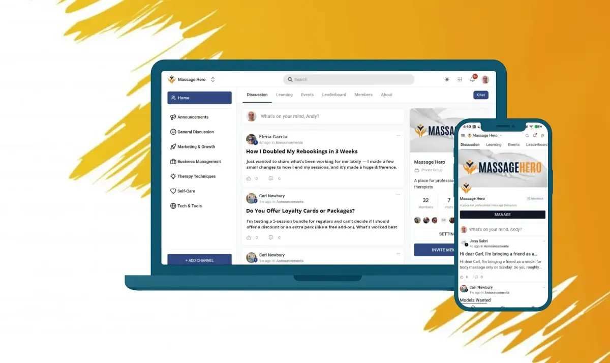 Inside the Massage Hero Community, you’ll find a supportive network of like-minded professionals ready to share advice, ideas, and encouragement.